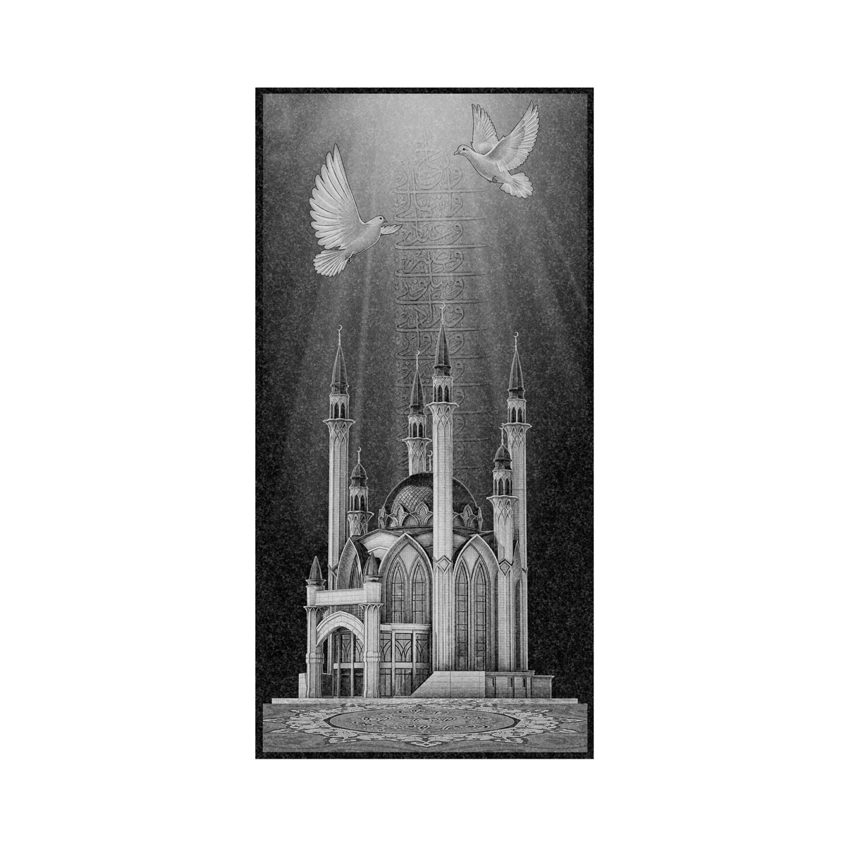 На чёрный гранит наносится контрастное светлое изображение. Чаще всего оформление гранитных памятников на кладбище заказывают на религиозную тему: